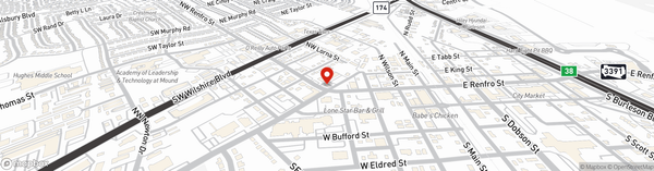 At the corner of Renfro Street and Johnson Street 2 blocks west of City Hall